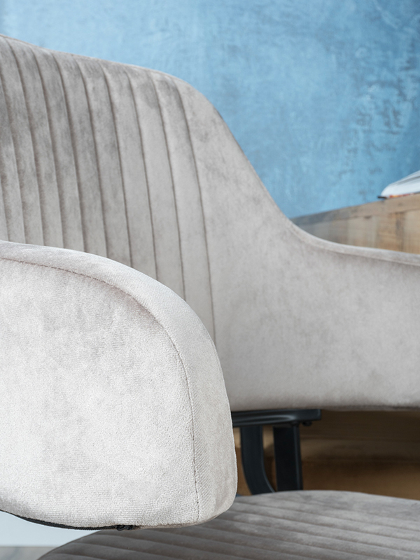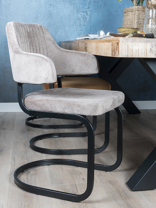 De brede, rondlopende armleuningen van eetkamerstoel Fox zorgen ervoor dat je heerlijk lang kan tafelen. De velvet stof is voorzien van een prachtig fluweel effect, wat mooi in contrast staat met het stoere metalen onderstel. Eetkamerstoel Fox is verkrijgbaar in 4 kleuren: Antraciet, Army Green, Oker en Taupe. We love velvet! Naast dat het een warme en luxe uitstraling heeft, is velvet ook nog eens fijn in gebruik. De ‘haartjes’ die omhoog staan zorgen ervoor dat het vuil meer op de stof ligt dan dat het in de stof trekt. Wie wil er nou niet úren natafelen op een velvet stoel? Een eethoek met een twist! Wil je graag verschillende eetkamerstoelen met elkaar combineren, maar ben je bang dat het te druk wordt? Kies één model, in verschillende kleuren. Of verschillende eetkamerstoelen in een zelfde kleur. Durf te mixen, niets is te gek!
