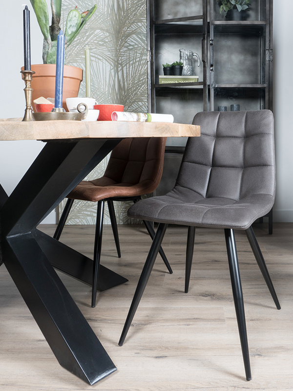 Eetkamerstoel Galgary is dé nieuwe trend: een kuipstoel met een industriële look. De zitting is gemaakt van microfiber stof en heeft een gecapitonneerd patroon. Hierdoor staat de stoel niet alleen erg leuk in jouw interieur, maar is de stoel ook comfortabel. Door het gebruik van verschillende materialen, past de stoel in meerdere woonstijlen. Eetkamerstoel Galgary is verkrijgbaar in verschillende kleuren. Een eethoek met een twist! Wil je graag verschillende eetkamerstoelen met elkaar combineren, maar ben je bang dat het te druk wordt? Kies één model, in verschillende kleuren. Of verschillende eetkamerstoelen in een zelfde kleur. Durf te mixen, niets is te gek!