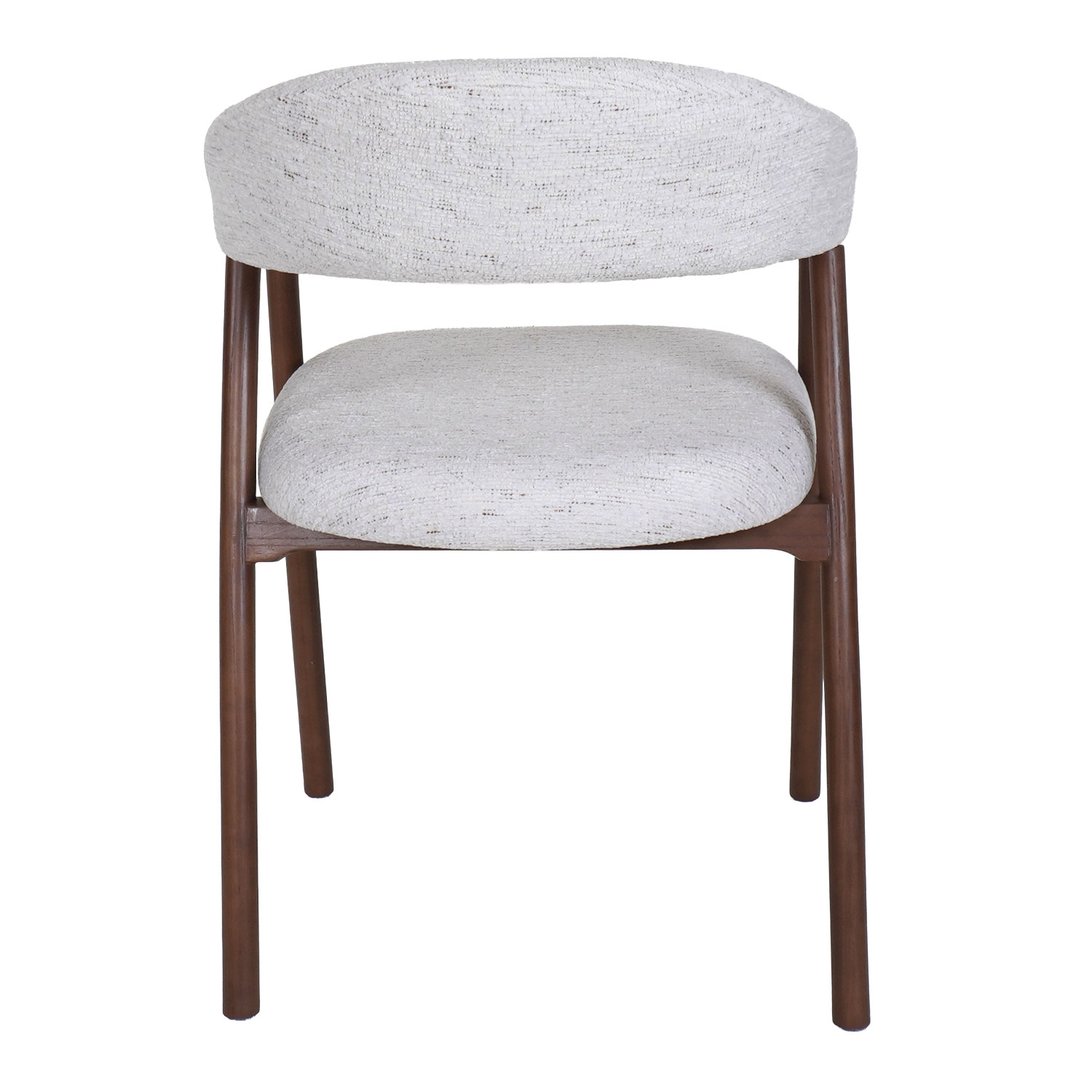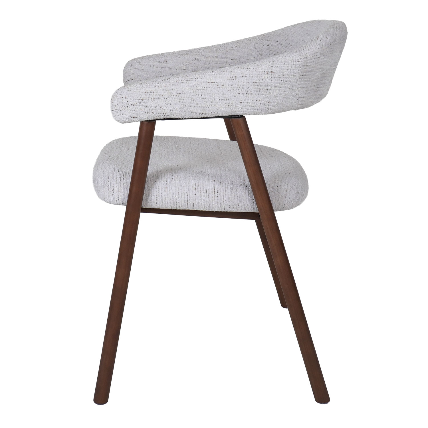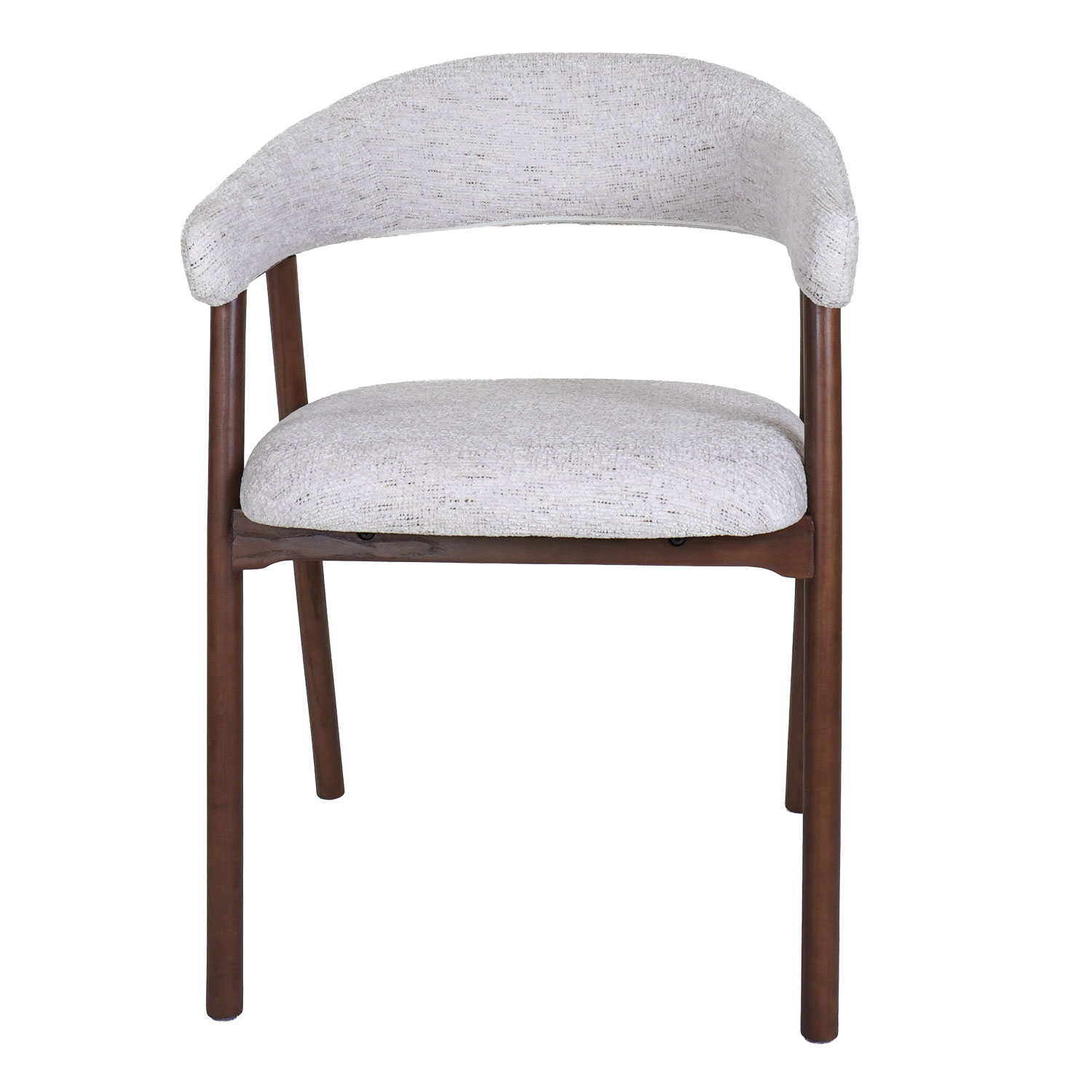 Eetkamerstoel Nila is met haar stijlvolle looks een perfecte japandi stoel. Deze elegante stoel heeft een naturel stoffen zitting voor ultiem comfort en een walnootkleurig houten frame voor de nodige stevigheid. Dit tijdloze ontwerp voegt direct sfeer en stijl toe aan je eetkamer. Eetkamerstoel Nila is niet alleen een echte blikvanger door de unieke uitstraling, maar biedt ook veel comfort. De stoel past perfect in een japandi interieur, maar staat ook prachtig in een beige interieur.