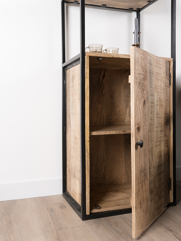 Je mooiste spullen tentoonstellen, maar ook je kleine rommeltjes verbergen? Vakkenkast Cil is het antwoord! Hij biedt het beste van twee werelden met zijn open vakken en mooie houten deurtje. Vakkenkast Cil heeft een afmeting van 200 x 55 cm. Deze hippe vakkenkast heeft zowel een decoratieve als functionele functie. Het frame is gemaakt van metaal. In de open kast kan je al jouw woonaccessoires, planten of verzameling een mooi plekje geven.