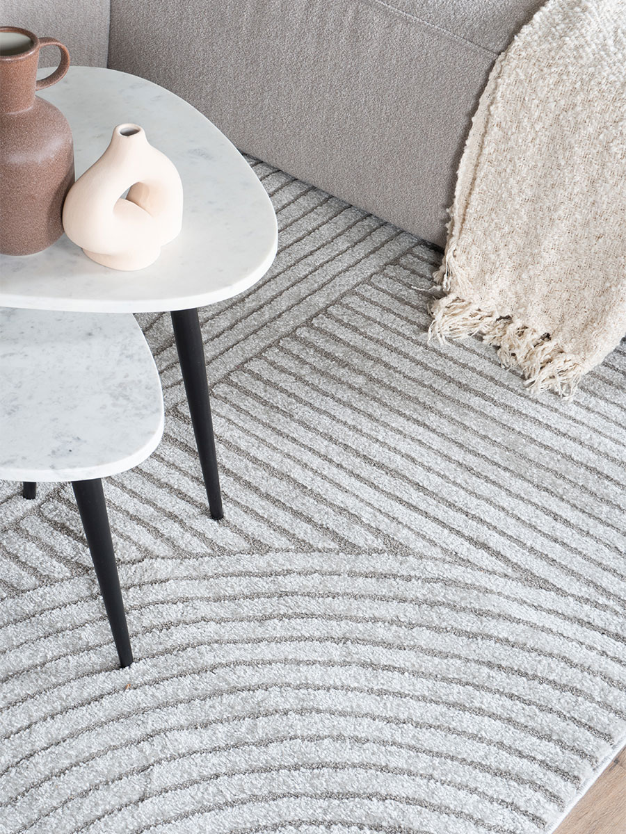 Het opvallende lijnenpatroon van Vloerkleed Ella is als een zachte golf van ronde en rechte lijnen die door het kleed lopen. Het hoog-laag poolontwerp zorgt voor een subtiel reliëf, waardoor het patroon zichtbaar wordt. Dit kleed voegt niet alleen textuur toe aan de ruimte, maar is op zichzelf een kunstwerk. De zachte kleur en het patroon maken het gemakkelijk om Ella bij jou thuis toe te passen. Vloerkleed Ella is verkrijgbaar in de kleuren cream, beige en bruin en in de volgende maten: ø160 cm, ø200 cm, ø240 cm, ø280 cm, 80 x 150 cm, 140 x 200 cm, 160 x 230 cm, 200 x 290 cm, 240 x 340 cm en 280 x 380 cm.