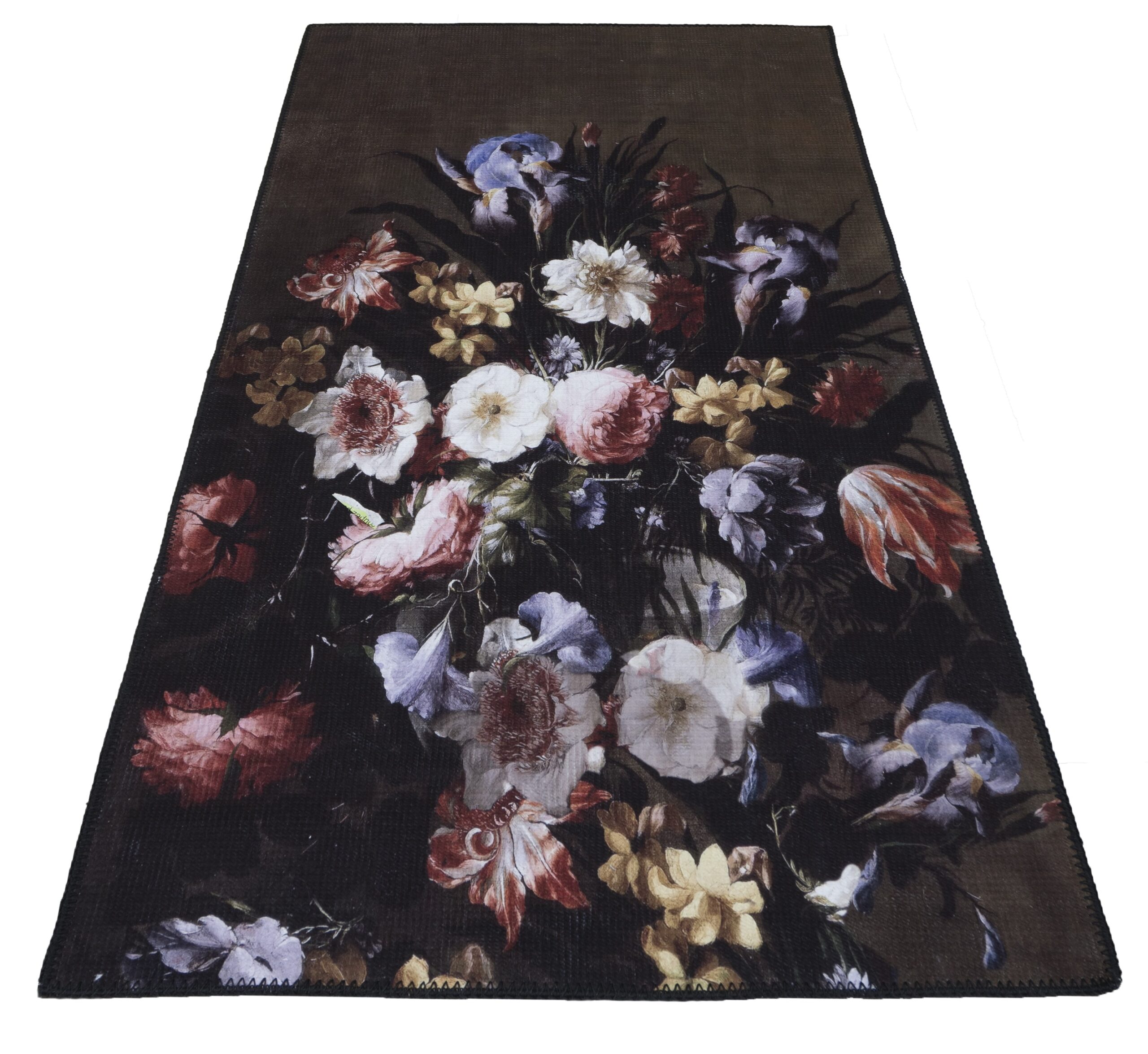 Wil je een kleed in de hal of gang dan is een wat langer en smaller model in het formaat 80 x 150 cm een goede optie. Een loper geeft gasten direct het gevoel dat ze welkom zijn! Ben je op zoek naar een trendy eye-catcher voor in je interieur? Dan is vloerkleed Ramos van het merk Home67 precies wat je zoekt! De print met donkere achtergrond en gekleurde bloemen is op dit moment een grote trend en is perfect als je kleur wilt toevoegen aan je interieur. Het design is geïnspireerd op één van de meesterwerken van de kunstenaar Ruysch. Het vloerkleed is daarnaast makkelijk te combineren in het interieur. In het vloerkleed zijn namelijk zoveel verschillende kleuren te zien dat het vloerkleed overal bij past. Leverbaar in de volgende maten: ø120 cm, ø160 cm, ø200 cm, 80 x 150 cm, 160 x 230 cm en 200 x 290 cm.